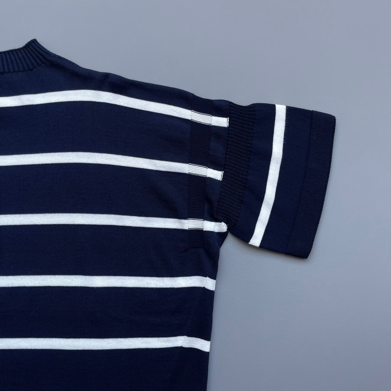 ボーダーの配色から幅までこだわったニット。Tシャツ感覚で着こなせるリラックスしたシルエットに