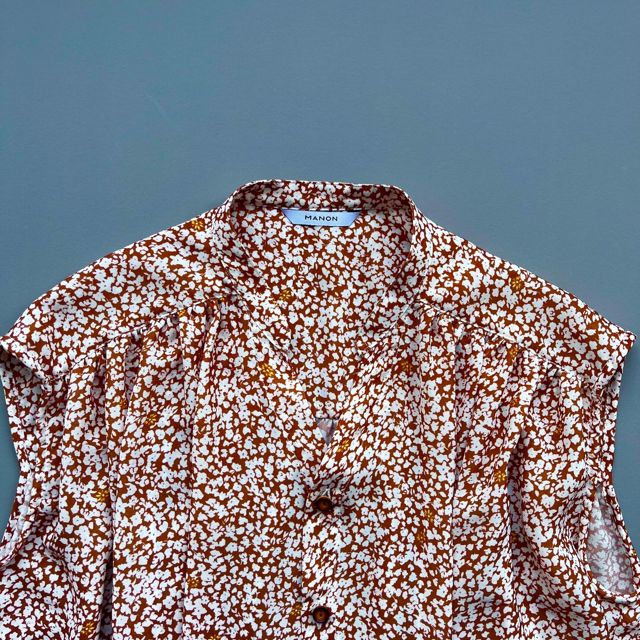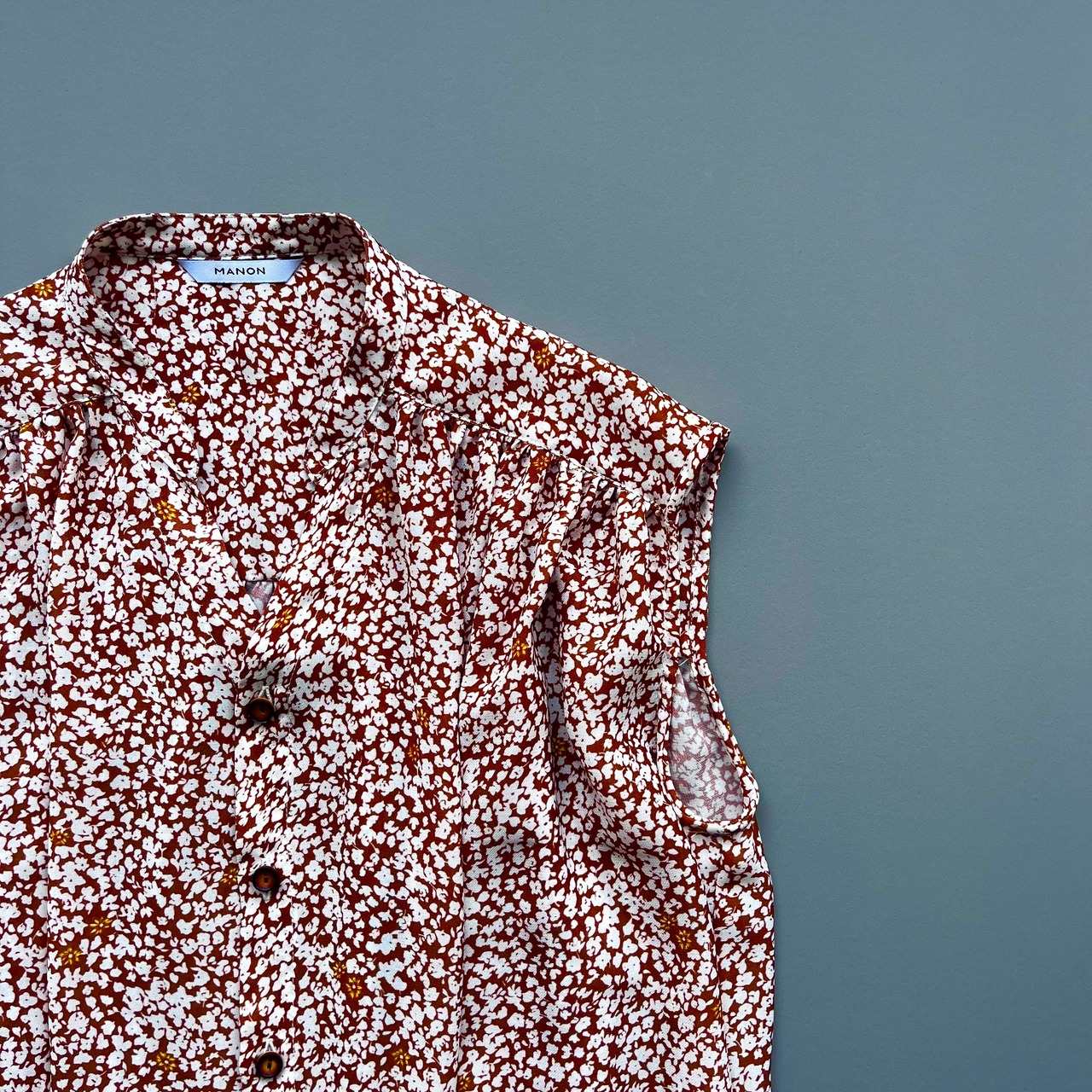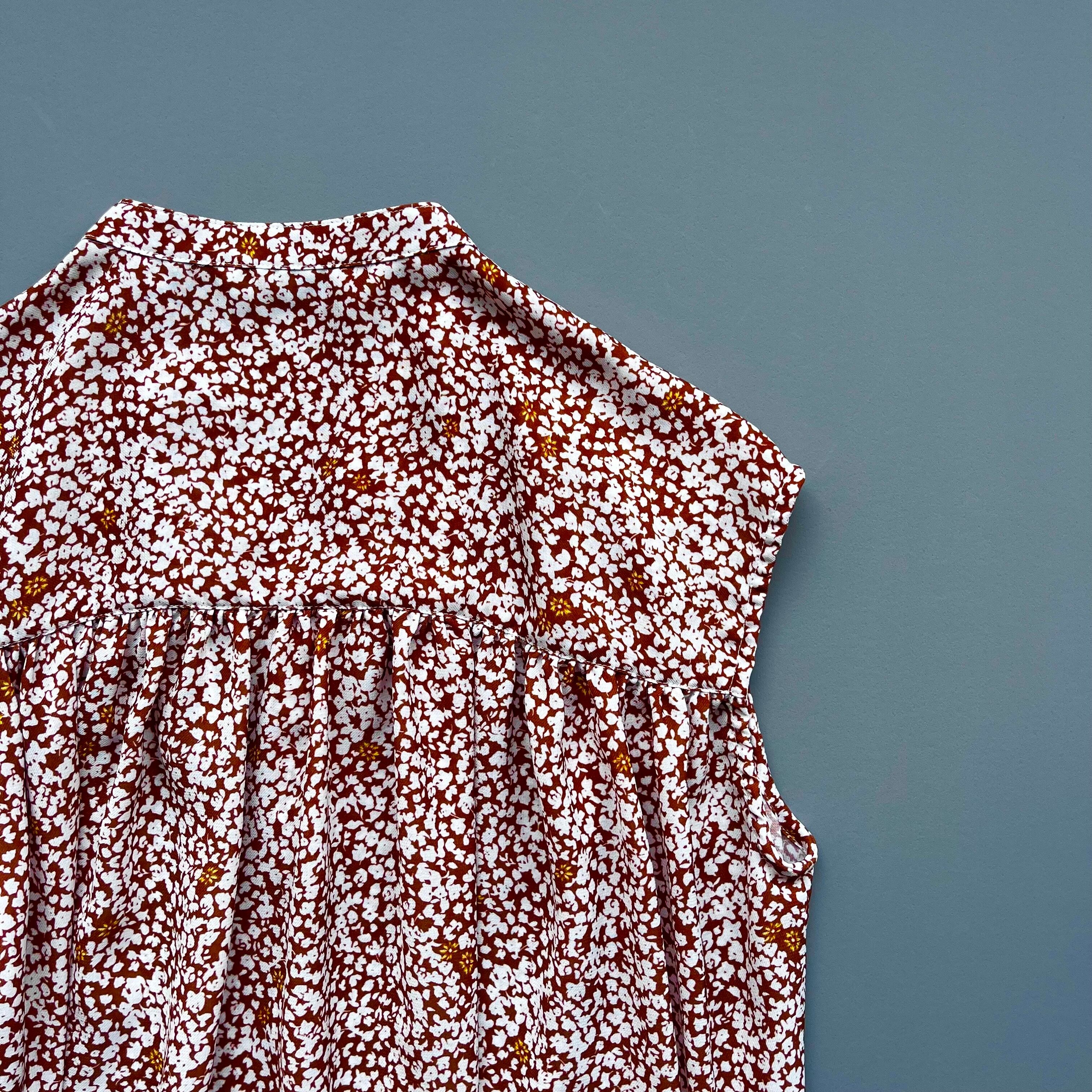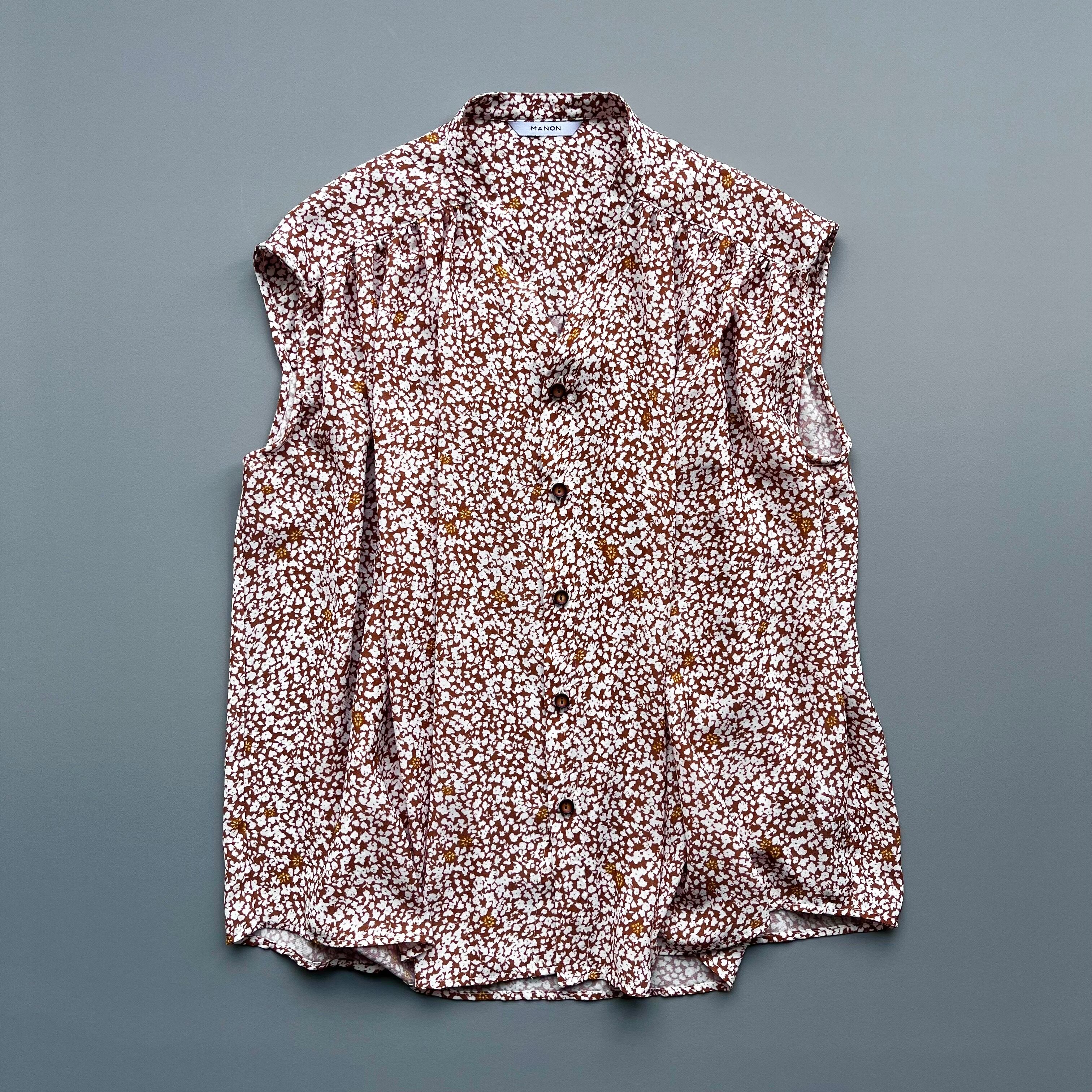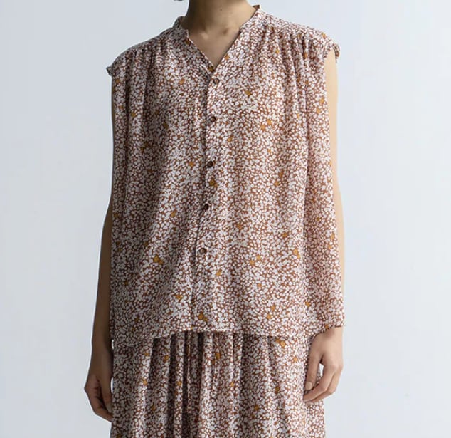 オリジナルフラワープリント ノースリーブブラウス