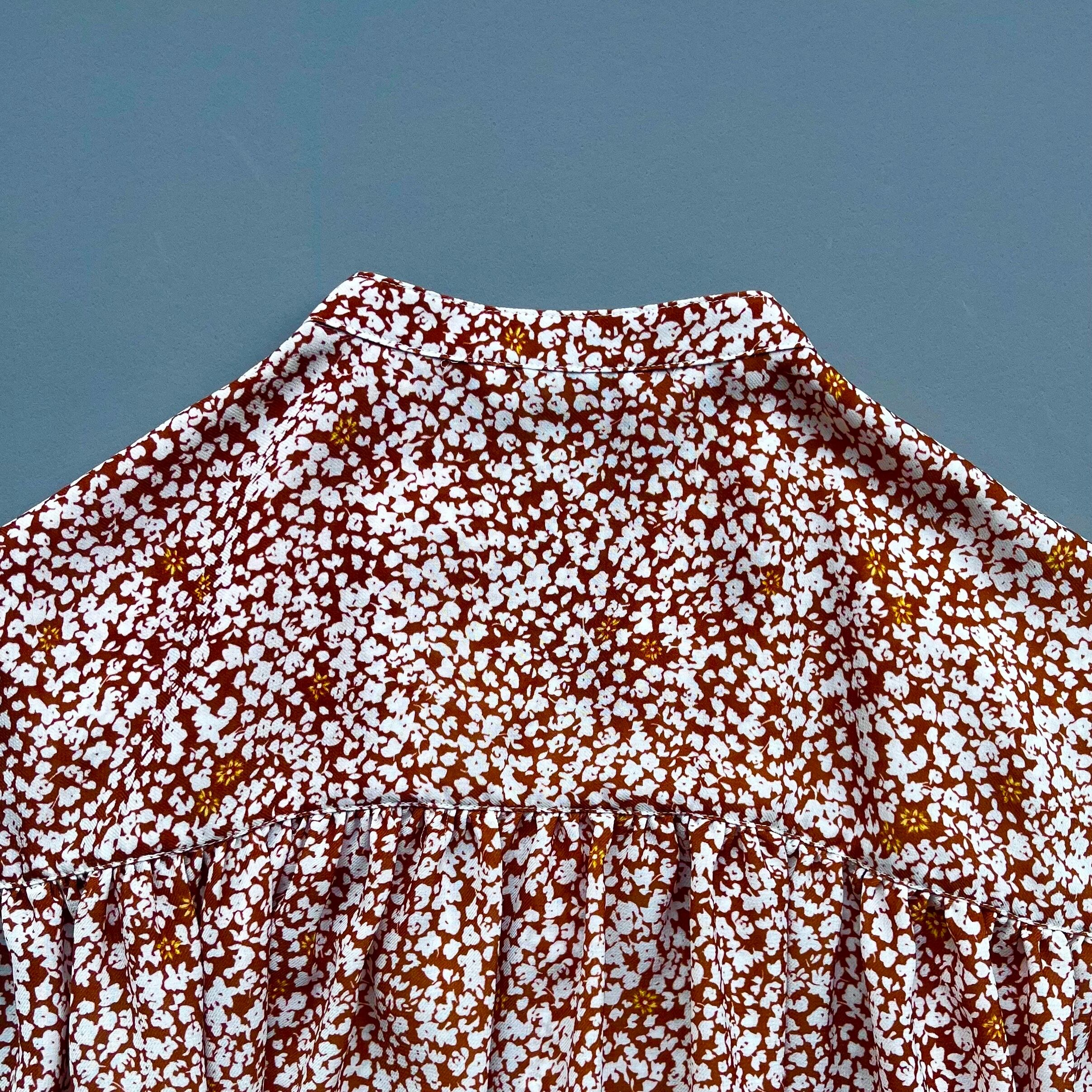 衿はスタンドカラーで肩にたっぷりギャザーを入れたフレンチスリーブです。