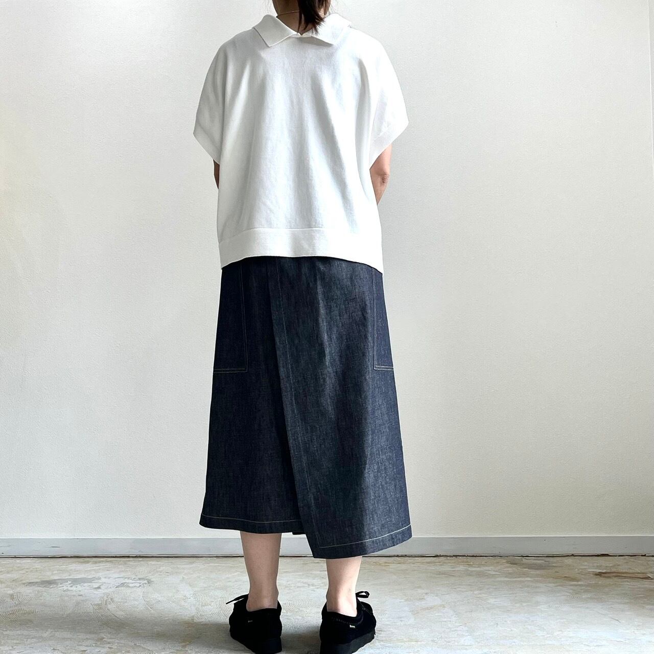 ポンチョシルエットのリラックスフィット2WAYポロニットです。スリーブレスでゆとりのあるサイズ感ですが、きちっとした印象を与える前後2WAYで着用できる大人のプルオーバーポロニットです。