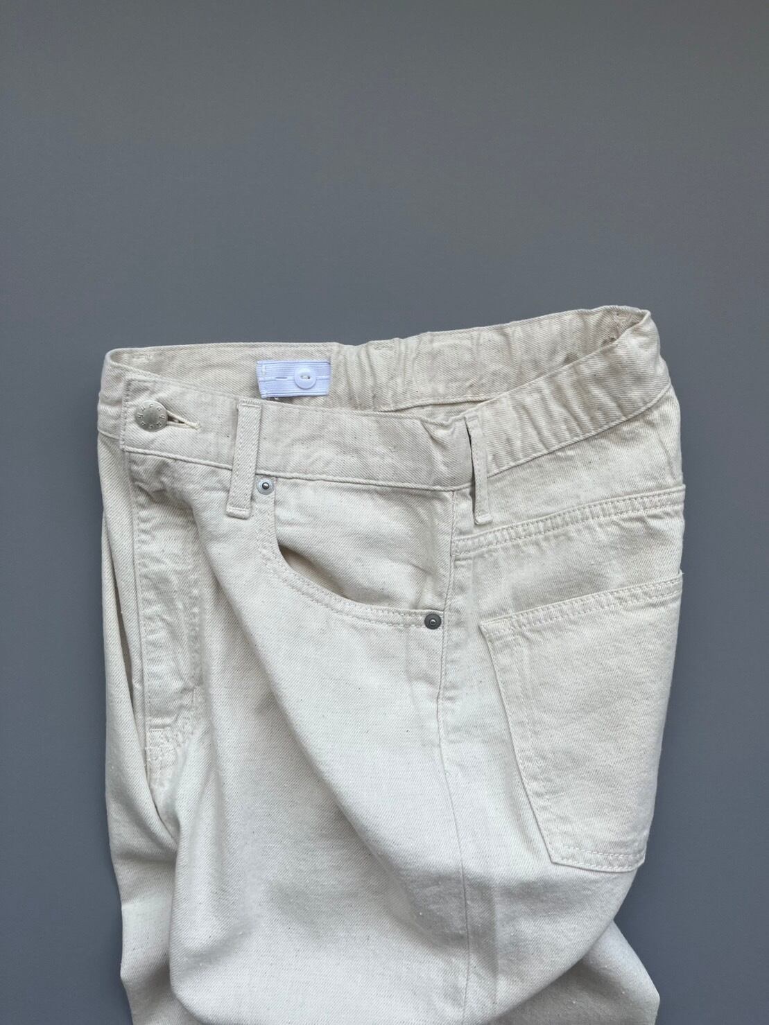 ボタンホールゴムで自由にウエストを調整できるので、ハイライズ特有の締めつけ感がなく、腰が浮かない美しいウエストラインになります。