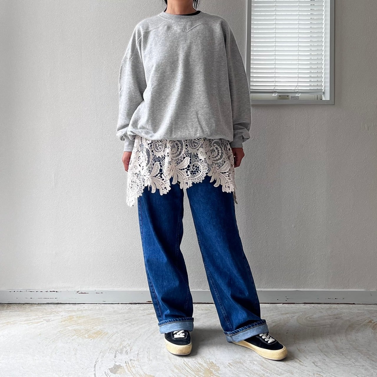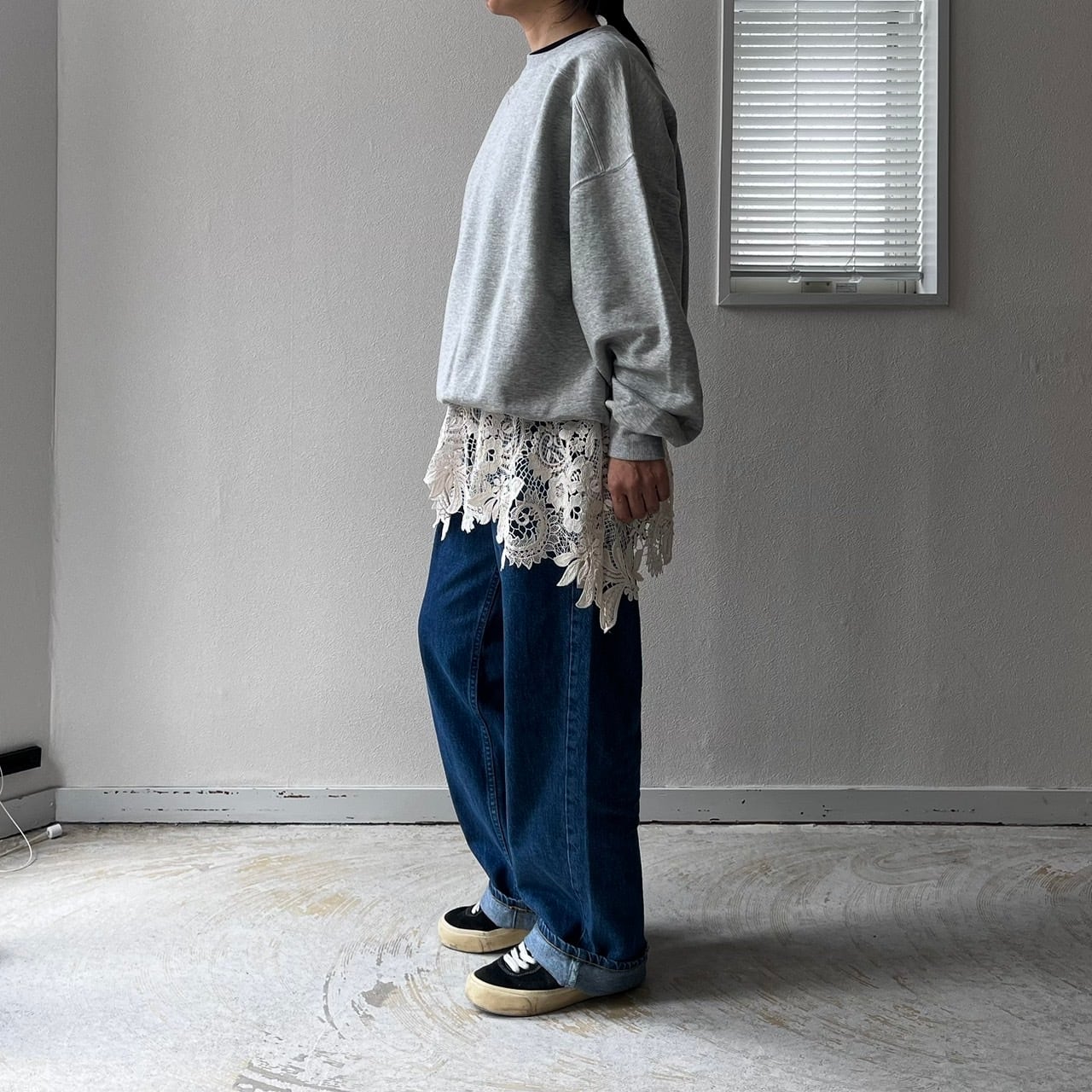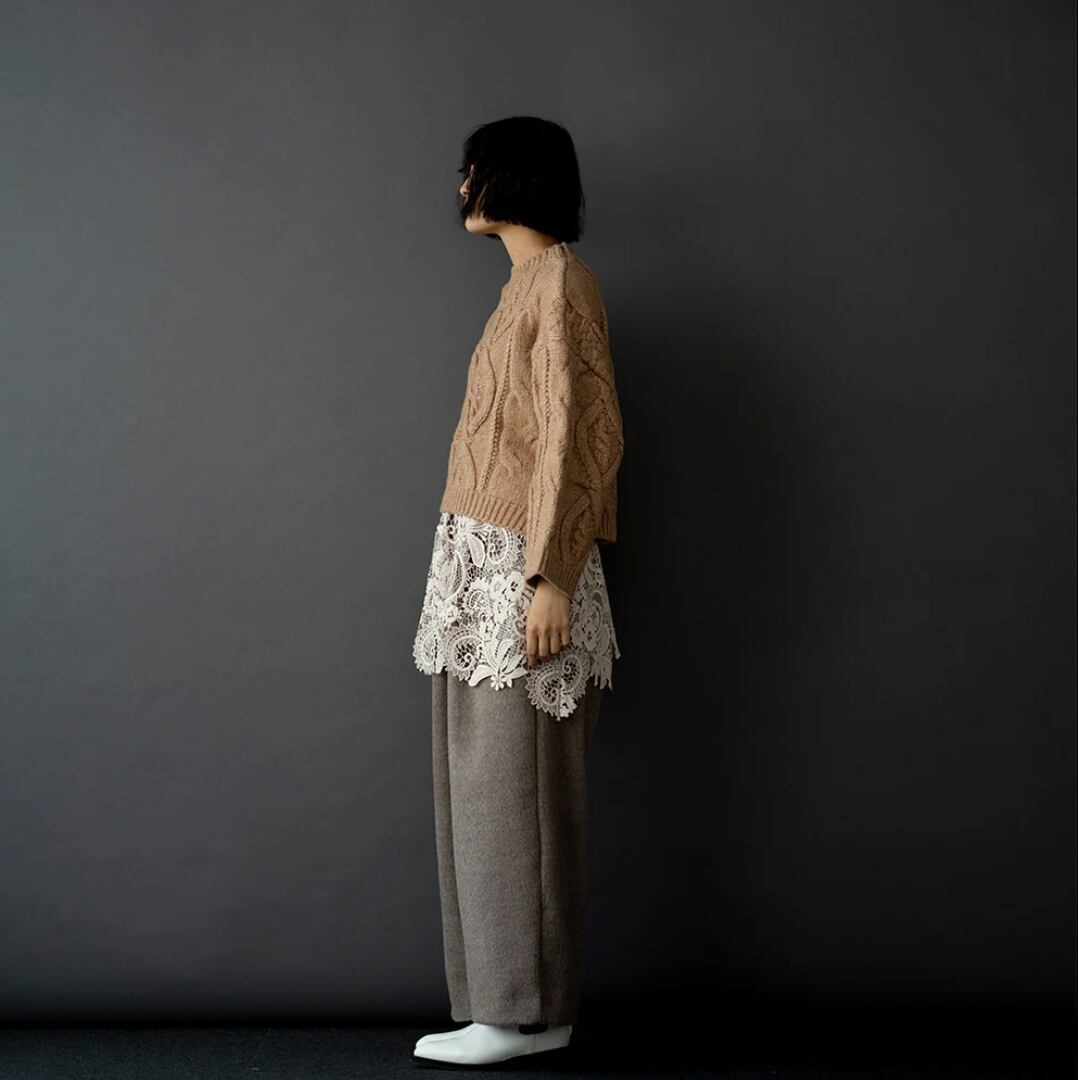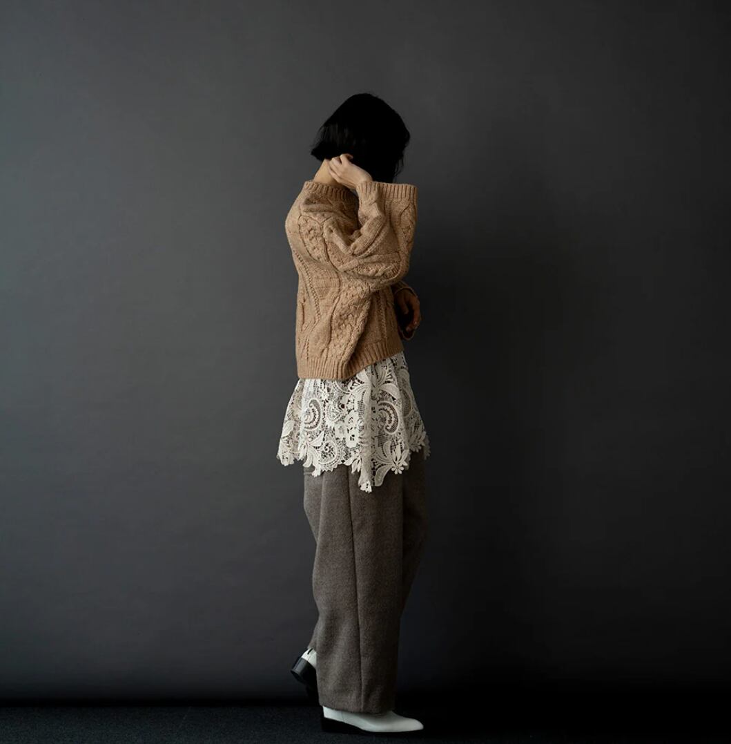 パンツやスカートなどのレイヤードスタイルで華やかに着映えるアイテムです。