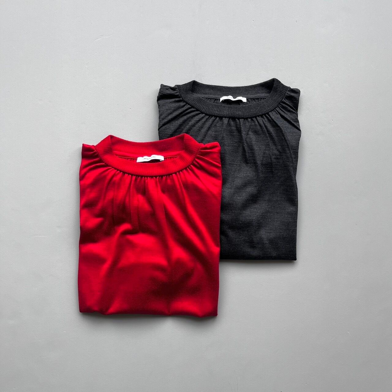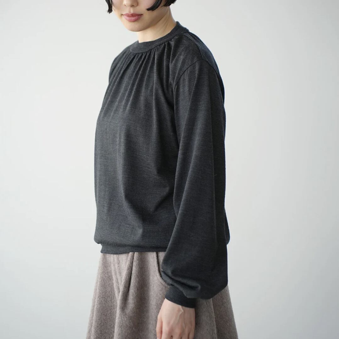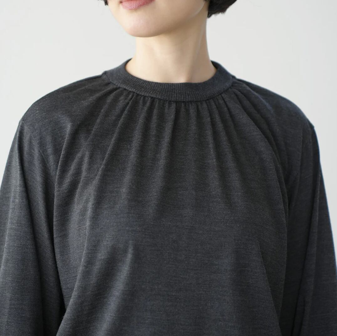 ウール ギャザーネック ロングスリーブTシャツ