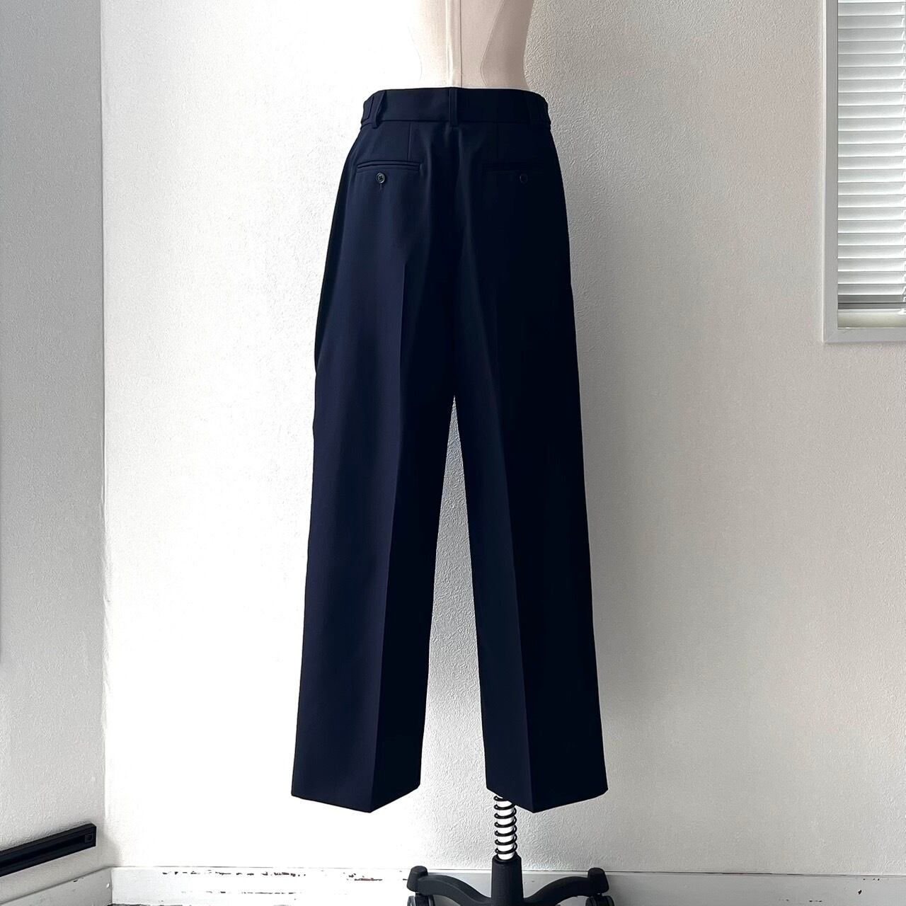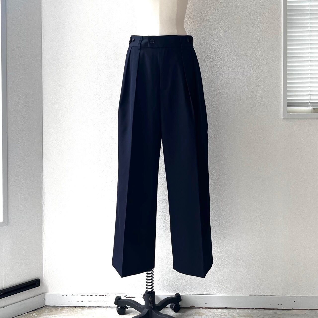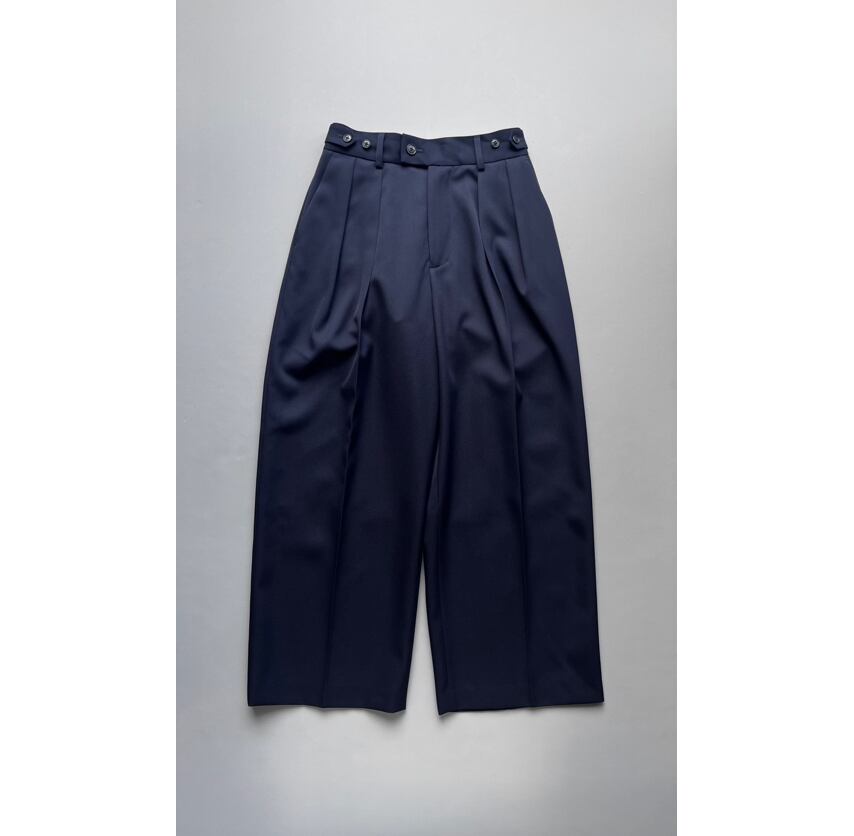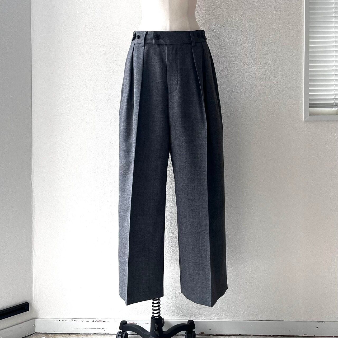 ウエスト回りをきれいに魅せるダブルプリーツのパンツ。フィット感はそのままで、ウエストとヒップ周りにも適度なゆとりをもたせ大人が着れるワイドレッグに仕上げました。