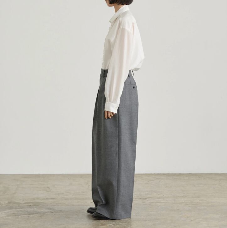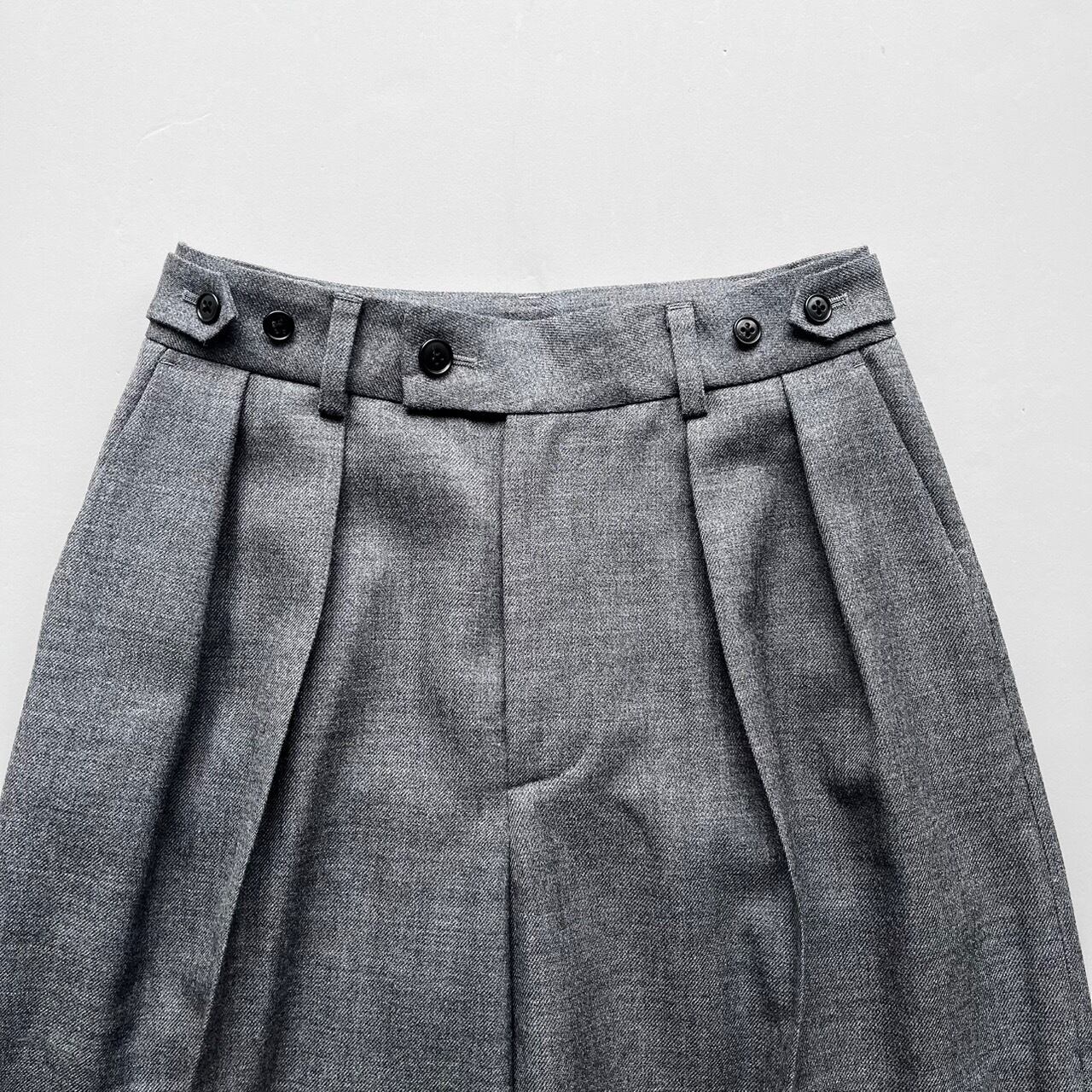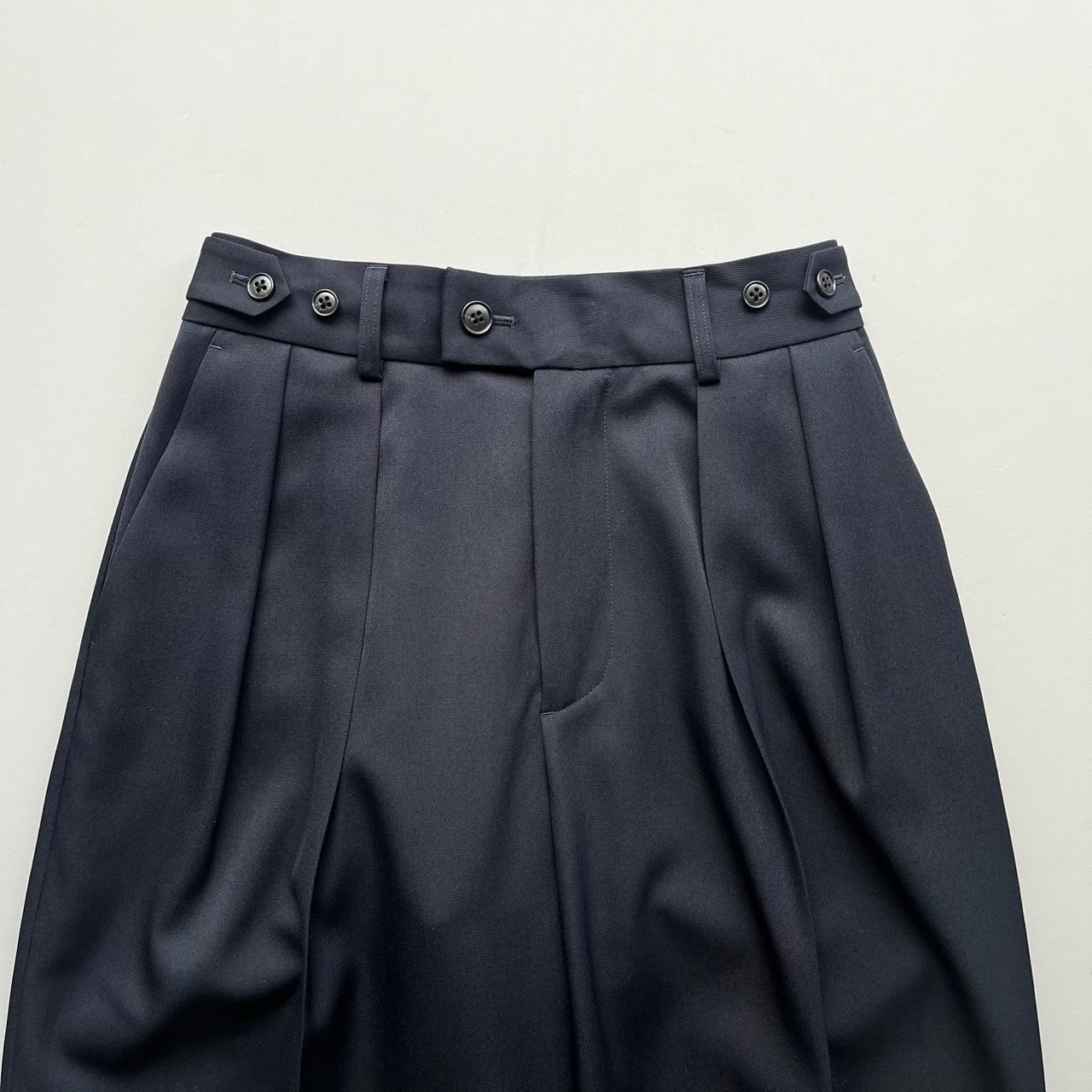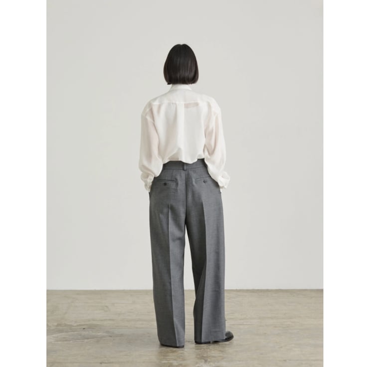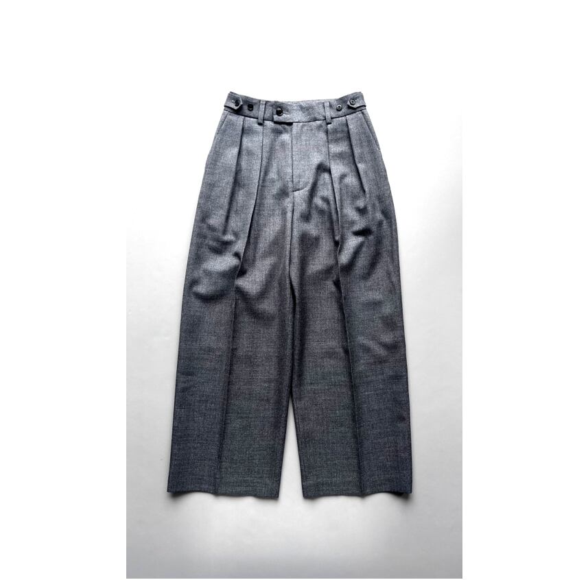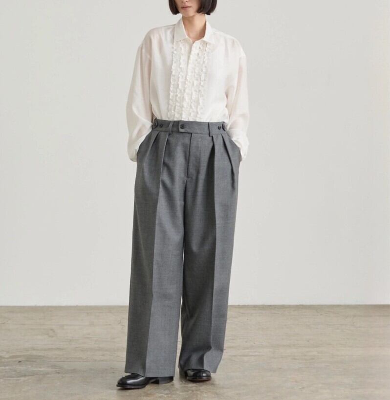 ウエスト回りをきれいに魅せるダブルプリーツのパンツ。フィット感はそのままで、ウエストとヒップ周りにも適度なゆとりをもたせ大人が着れるワイドレッグに仕上げました。