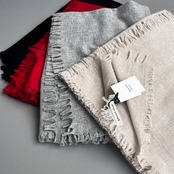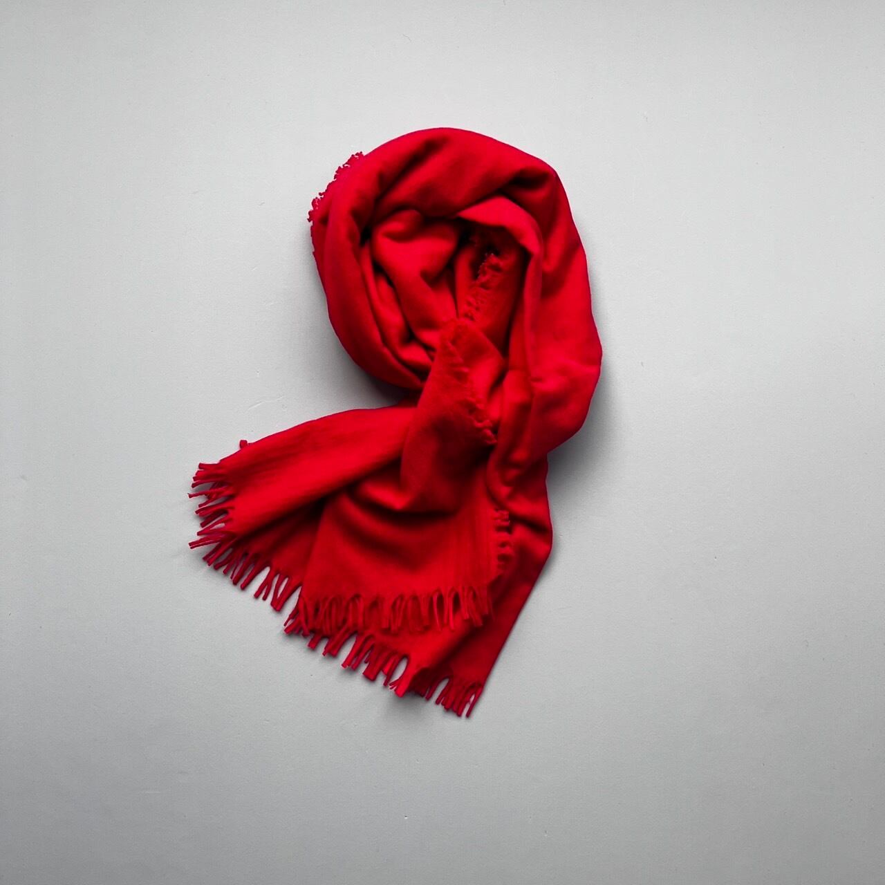 織り上げる段階では、糸の中心に水溶性ビニロンの糸を入れ、最終工程でこの糸を製品洗いで解かします。糸の中心が空洞になり空気を沢山はらんだ柔らかでスポンディッシュな質感が生まれます。薄手ながらボリュームの出る不思議なストールです。25FWの新色としてPostBoxが登場しました。