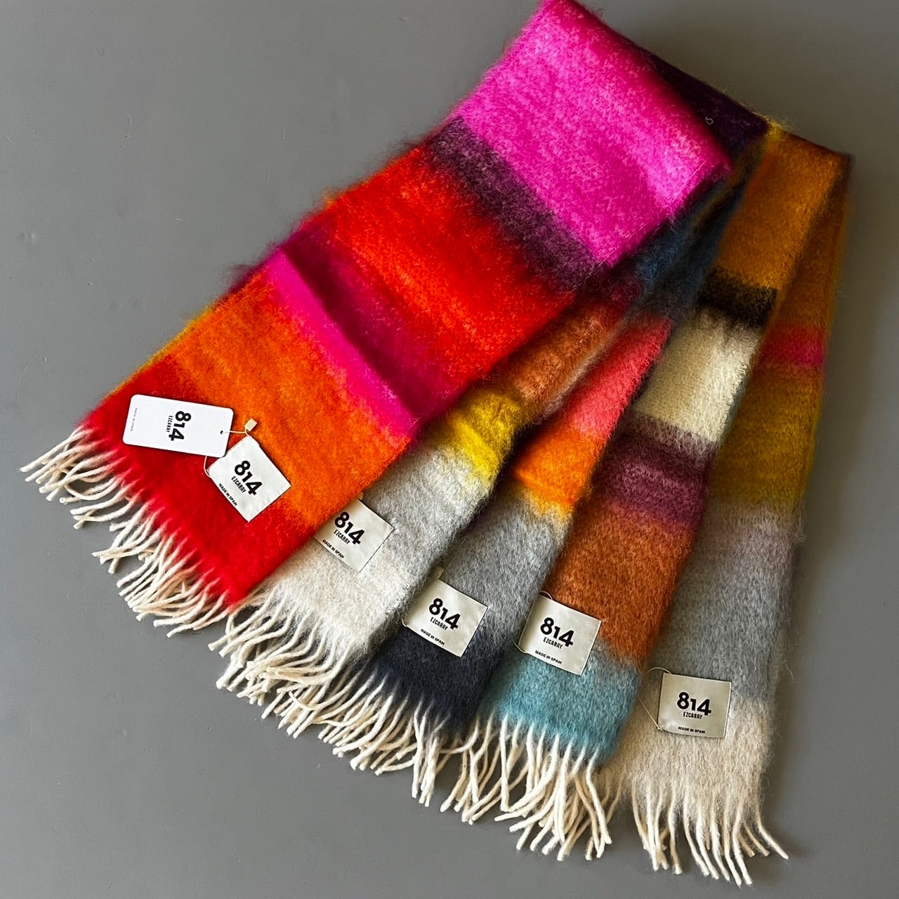 ヘアリーな質感と鮮やかなカラーパレットが魅力の一枚。暗くなりがちな冬の装いに、アクセントと温もりをプラスしてくれるデザインです。軽やかな巻き心地ながら高い保温性を実現。