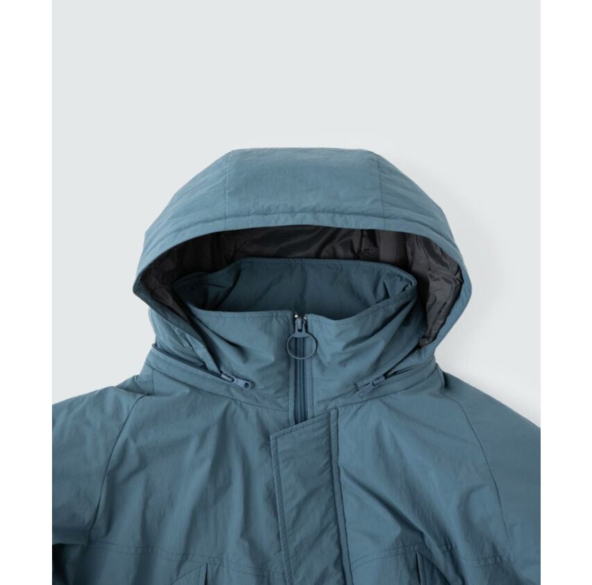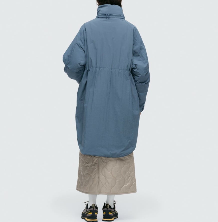 ウィメンズ仕様のモンスターパーカー。表地に非フッ素高耐久撥水加工CZEREXを施したハリ感のあるCORDURA NYLON、中綿にCLIMASHIELD COMBATを使用。 メンズとは違いフロントは音が鳴りにくく引っ掛かりを起こさないドットボタンを採用。腕のベルクロワッペンもなくし、前ファスナーのスライダーをリング型にすることでミリタリー感を軽減。 袖口リブのインナーカフスが風の侵入を防ぐ。 ロゴも主張を控え、後ろ身の衿下に生地と同色でプリント。 近年の日本の気候や、レイヤードのし易さ、収納性に配慮し中綿量を調整することで、オーバーサイズながら膨らみすぎないスッキリしたシルエット。 ウエストはドローコード採用でシルエットの変更が可能。【CORDURA ×CZEREX】ハリ感のあるCORDURA NYLONにCZEREX加工。CZEREXはフッ素化合物を含まない環境配慮型高耐久撥水加工。洗濯を繰り返しても高い撥水機能を維持。(撥水機能を維持できる洗濯回数は当社従来品の10倍)さらに一般的なフッ素系撥水に比べ、生地と水滴の接触面積が小さく緩やかな角度でも水滴が転がりやすい。【CLIMASHIELD COMBAT】戦地や険しい自然など過酷な環境での使用の為に開発された中綿。米国製のこの特別な中綿は「Berry Compliant」(米国で国防製品 の素材調達において、国産品使用を義務付ける法律に準拠)を 満たし、かつ収納力に優れ、耐久性があり、AquaBanの機能によって 濡れたり多湿な環境でも保温性を発揮する。
