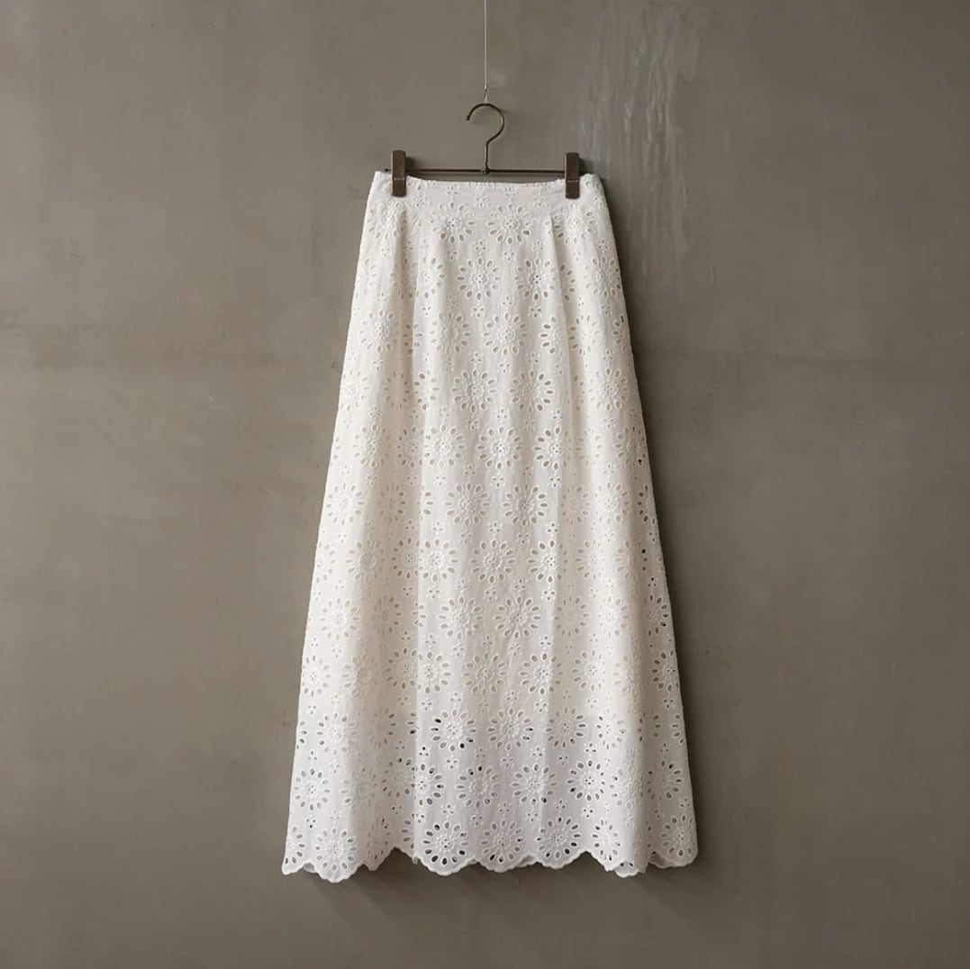 シルエットは腰回りにゆとりを入れたAラインスカート。