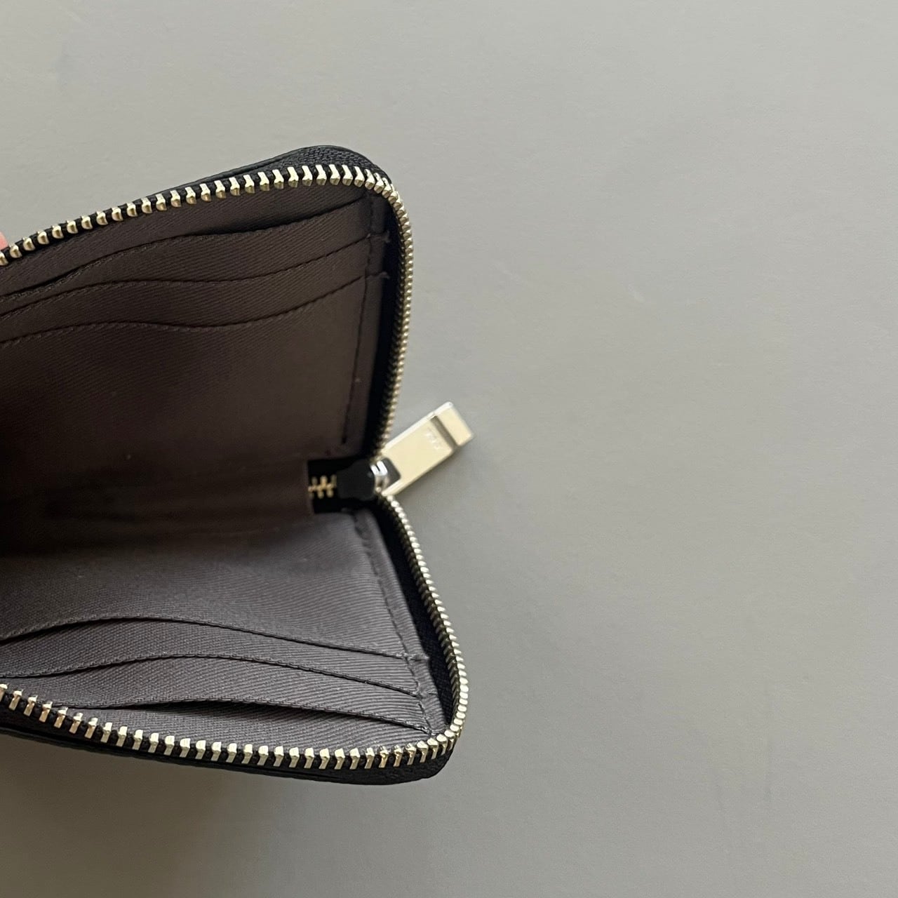 カードは8枚収納でき、背面にはジップ付きのコインポケット。お札も二つ折りで収納できる、実用性をしっかり備えたつくりです。