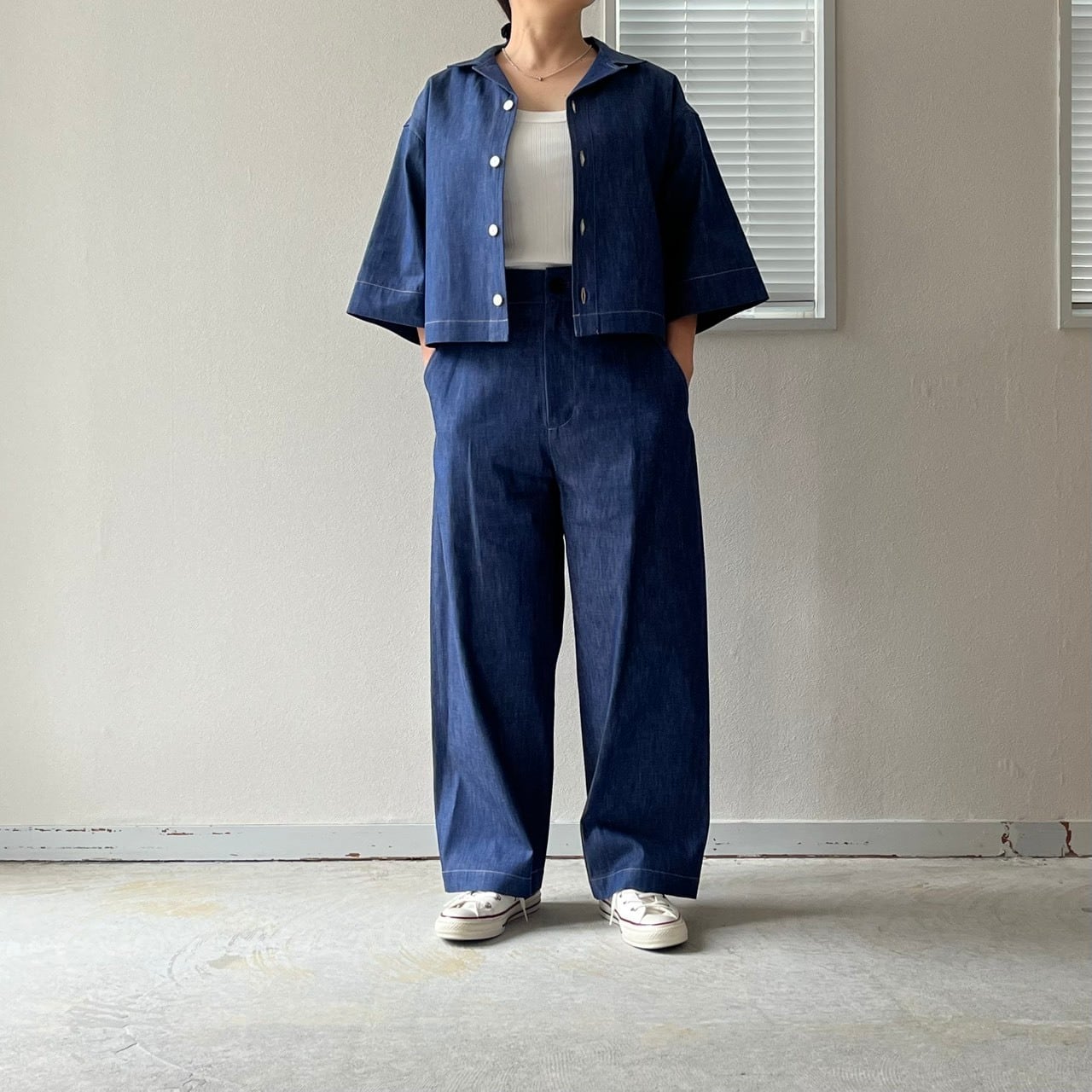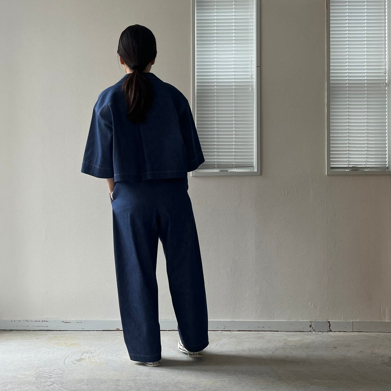 岡山デニムの中でもライトオンスで上品な雰囲気の素材をセレクト。高密度ならではの光沢感と軽さが特徴です。反応染めの為、移染や色落ちしづらいのも嬉しいポイントです。