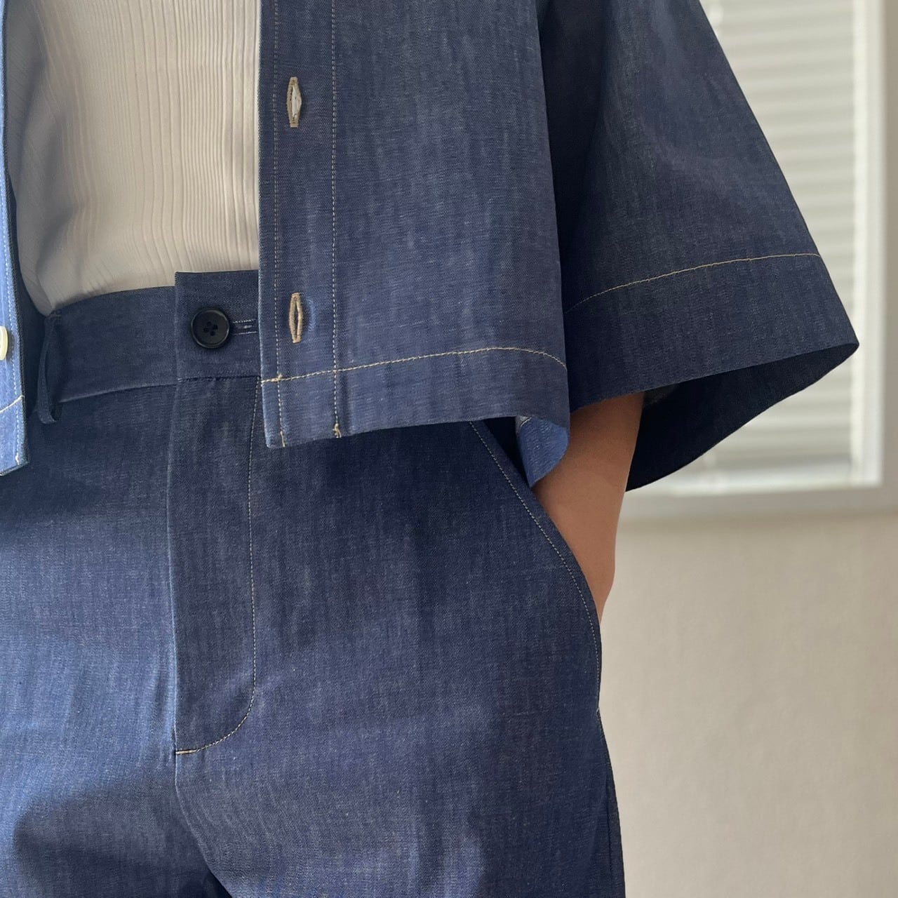 オーセンティックなアイテムをモダンにアレンジしたオープンカラーシャツ。ゆとりあるフィット感ながらショート丈で大人が着こなせるシルエットに仕上げました。シャツとしても、羽織としても活躍する夏のアイテムです。